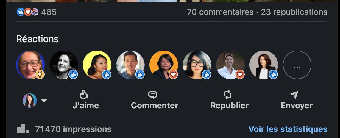 Performances du post sur Linkedin đ
